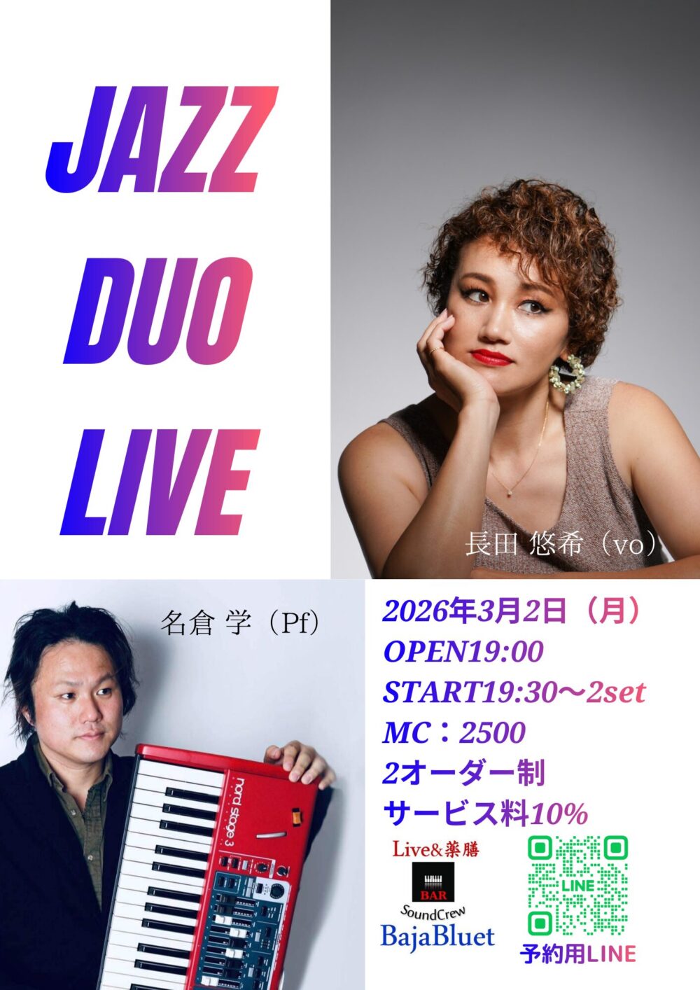 長田悠希vocal・名倉学piano JAZZ DUO LIVE